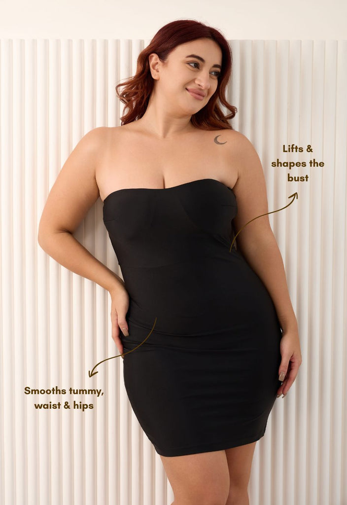 Discover the flawless foundation that perfects any outfit. The Bustier Shaping Dress is
