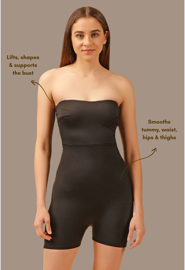 The Bustier Shaping Jumper is engineered to remain invisible beneath dresses, trousers, or